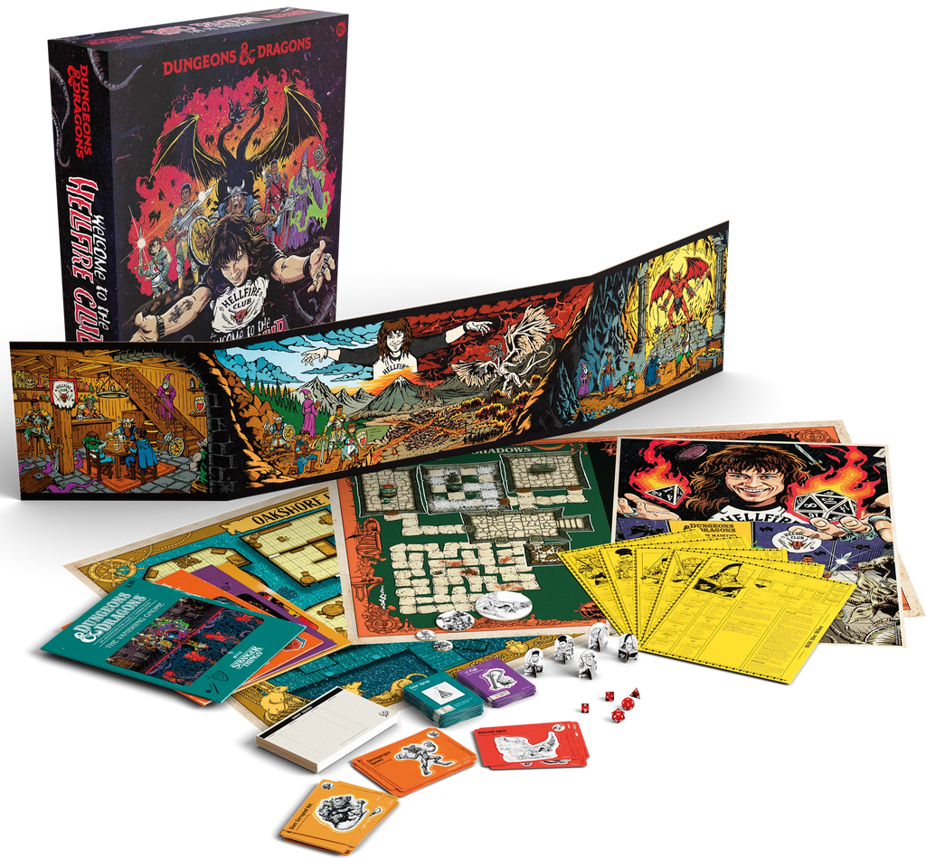 Authentische Show-Komponenten: Beinhaltet einen Willkommensbrief von Eddie, Dungeon‑Master‑Screen, Poster, Karten, Tokens, Charakterbögen, Handouts, Poster-Karten und Würfel – Stil & Grafik ganz im 80s‑Look