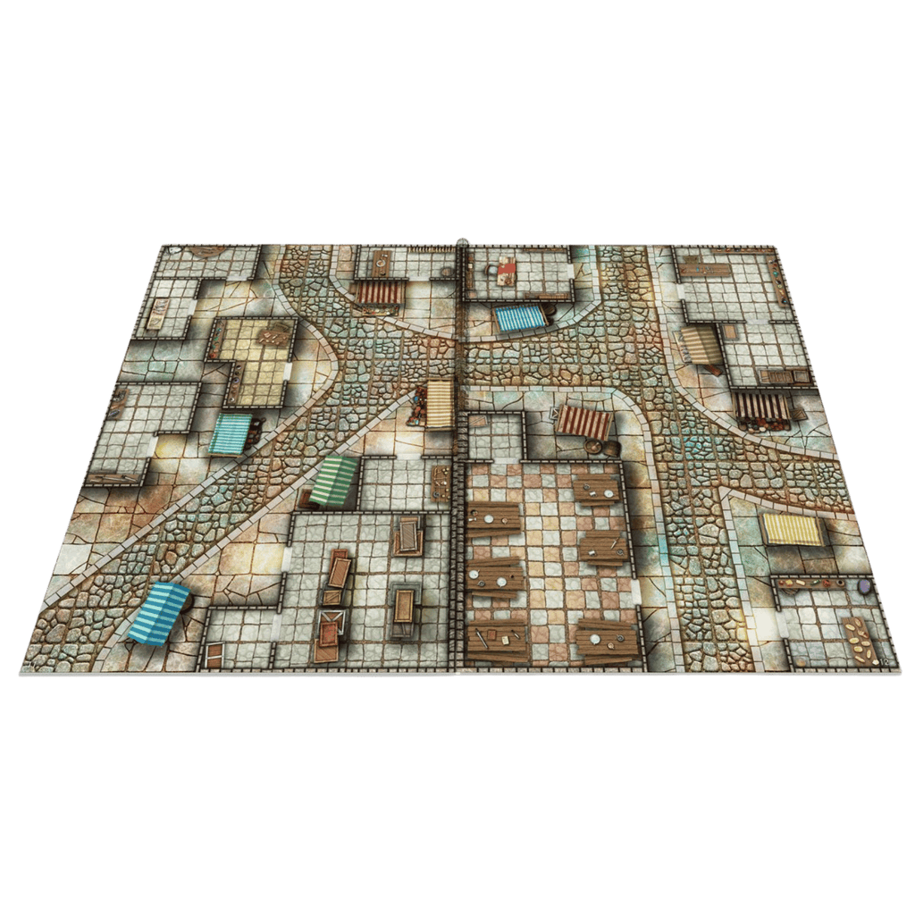 The Giant Book of Battle Mats – Straßen, Abwasserkanäle & Friedhöfe kombiniert riesige Karten mit wesentlichen Fantasy-RPG-Themen. Von gefährlichen Gassen über verdächtige Straßen, dunkle Friedhöfe bis hin zu Blockreihen von Geschäften – dieses Buch mit wunderschönen Karten bietet die perfekte Kulisse für unendlich viele Begegnungen.