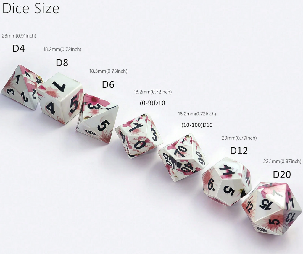 Inhalt: 7teiliges Würfelset, D20, D12, D10, D100, D8, D6, D4