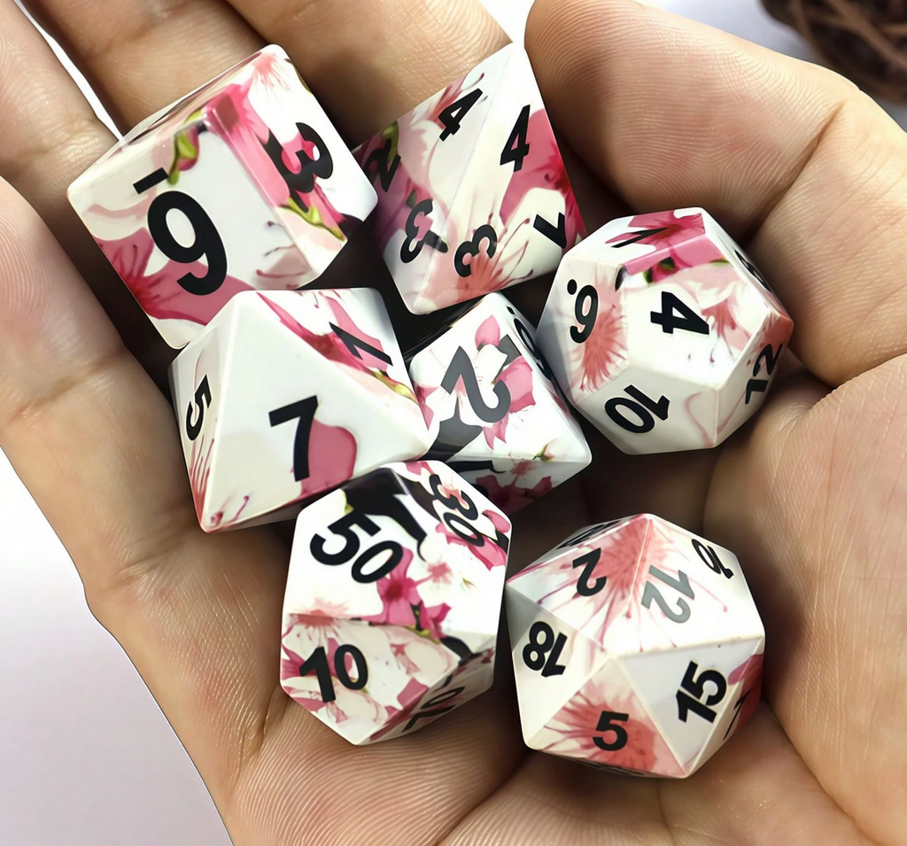 "Angehaucht von asiatischen Einflüssen, vereint dieses Würfelset Ästhetik und viele Nat20 - glauben wir zumindest."