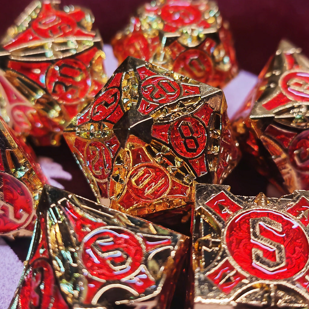In welches der Häuser gehörst du? Zeige es mit diesem Rot-Goldenen Diceset! Bringe dein Spielerlebnis aufs nächste Level mit diesem stylischen Würfelset!