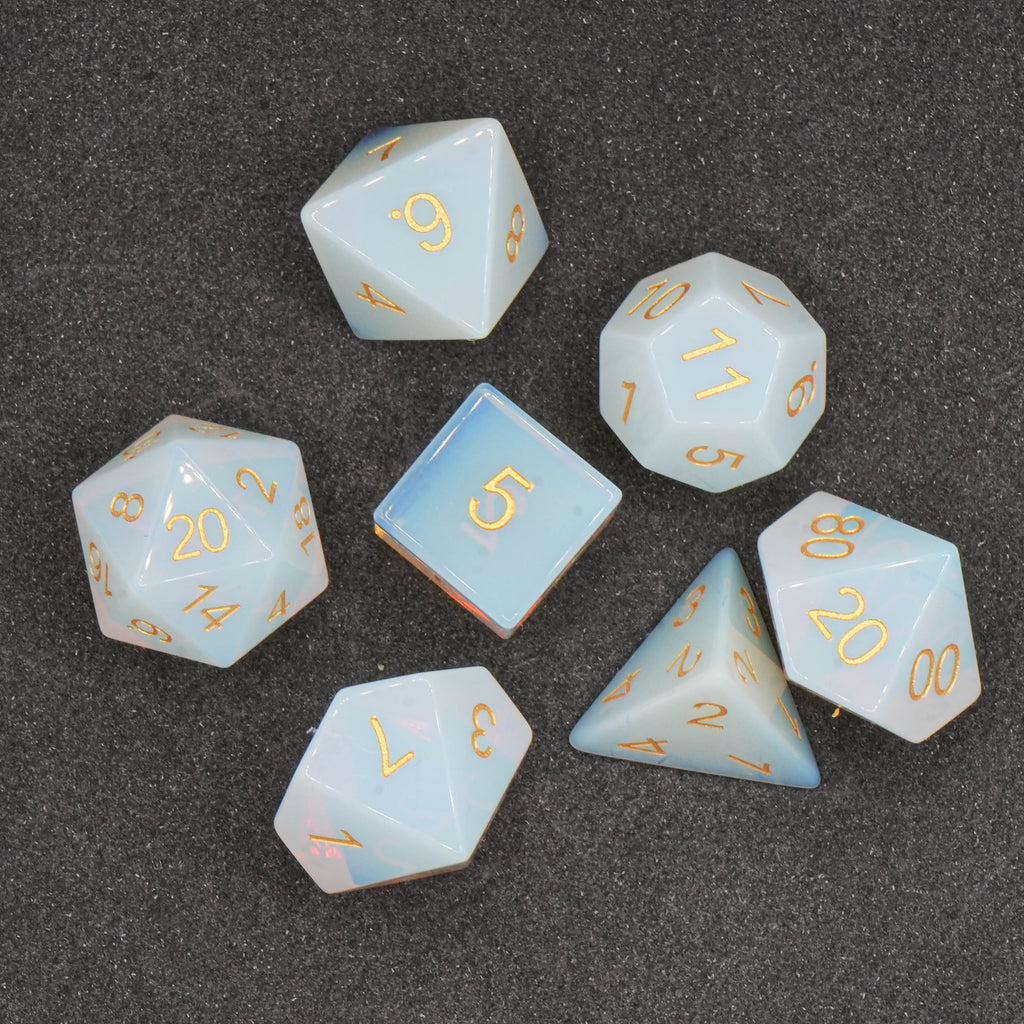 Opale gelten als Quelle astraler Kräfte. Das Gemdice-Opal-Würfelset sticht nicht nur durch seinen hochwertigen Look hervor, sondern auch durch das faszinierende Farbenspiel der Elemente, wenn es auf Licht trifft. Dieses Set bleibt sicherlich eine Augenweide am gesamten Spieltisch – für Spieler wie auch Spielleiter.